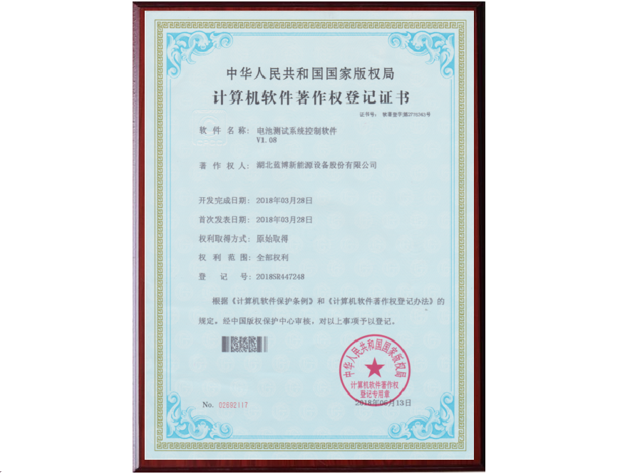 自2010年起,藍(lán)博公司技術(shù)市場團(tuán)隊深入分析市場需求,定位研究目標(biāo)和內(nèi)容,在產(chǎn)品線的協(xié)助下,合理組織公司資源,積極開展并高效完成藍(lán)博電池測試系統(tǒng)軟硬件的開發(fā),并于2013年5月、2018年1月、2018年2月向國家版權(quán)保護(hù)中心申報著作權(quán),經(jīng)過三個多月的嚴(yán)格審核,最終正式獲得軟件著作權(quán)。