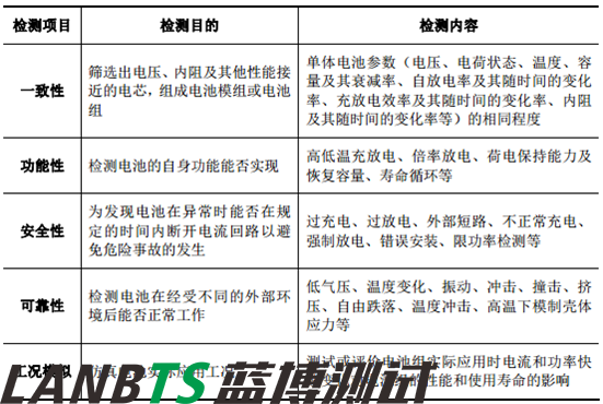 鋰電池檢測項目主要包括一致性、功能性、安全性、可靠性及工況模擬等五個方面。